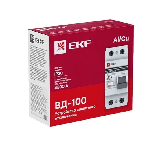 Устройство защитного отключения EKF AVERES DV, 4P, 63А/100мА S rccb-4-63-100-s-av