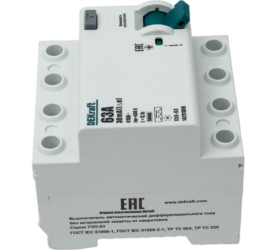 Устройство защитного отключения EKF DV, 4P, 63А/30мА, A, AVERES rccb-4-63-30-a-av