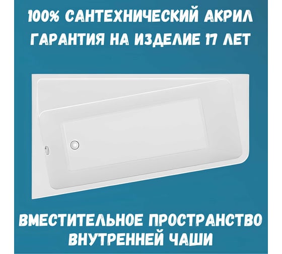 Ванна акриловая 1Marka PICCOLO 170х75, асимметричная, белая, правая 01пк1770п 01пк1775п