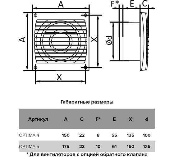 Вентилятор ERA STANDARD 5С обратный клапан 488-027