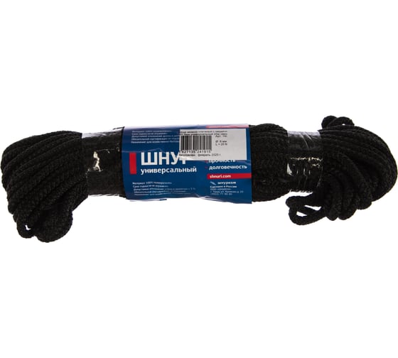 Шнур бытовой Сибшнур диаметр 6 мм 450 м черный на катушке 20833