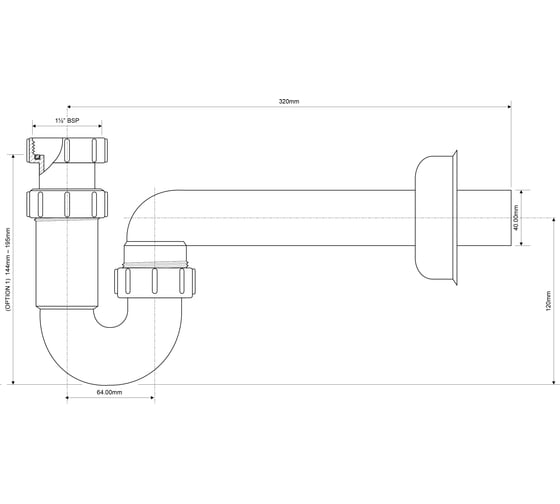 Трубный сифон McAlpine 1 1/2"х40 мм, без выпуска с отводной трубой, D40/50 мм MRSK12-50