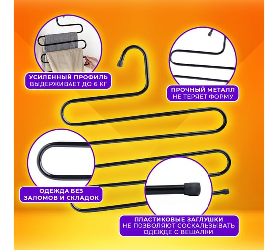 Антискользящая вешалка Доляна четырехуровневая 39х44 см, металл, цвета микс 819656