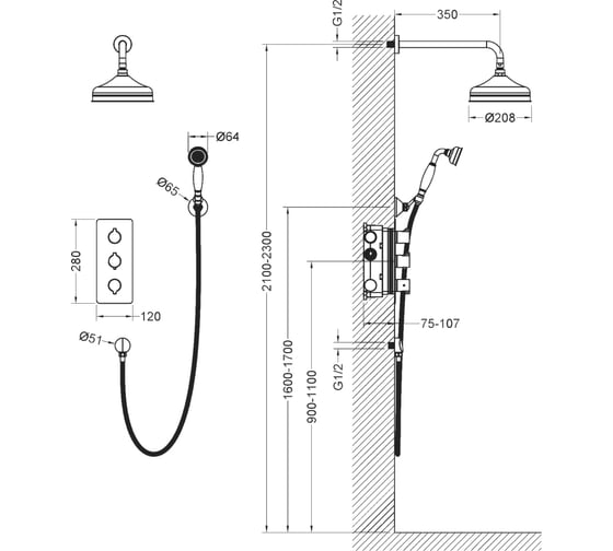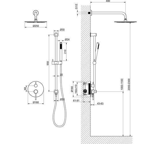 Встраиваемые душевые системы хром Timo