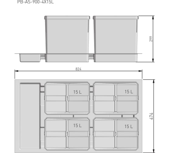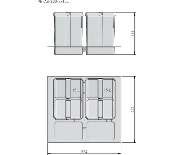 Система выдвижная ALVEUS Tandem 30 см, 2x15л , 3666101