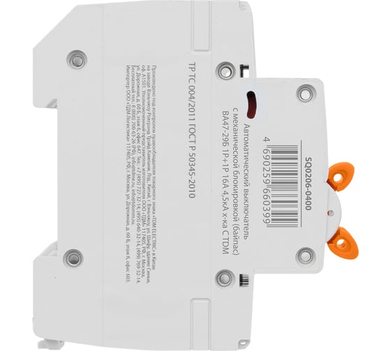 Автоматический выключатель TDM ELECTRIC ВА47-29 2Р, 16А, 4,5кА, характеристика С SQ0206-0093