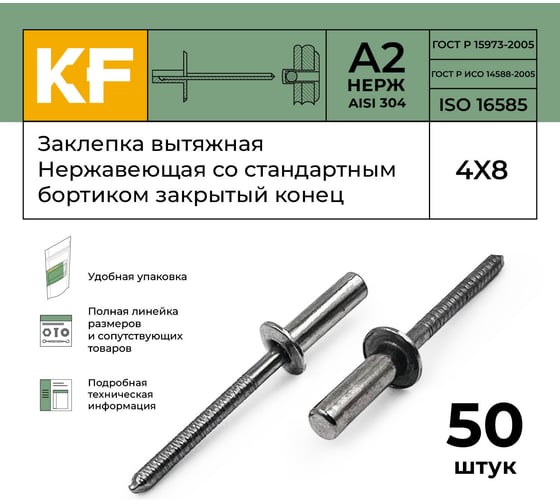 Нержавеющие заклепки Зубр Профессионал 4.0х8 мм, 50 шт. 313166-40-08