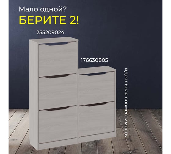 Обувница Letta Ультра плюс вертикальная 2 секции белое тиснение/бетон 750x859x246 L3617