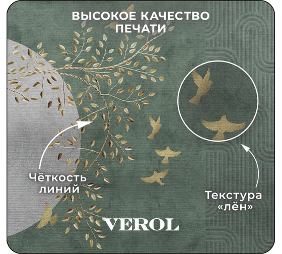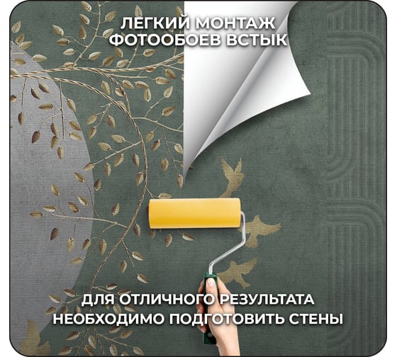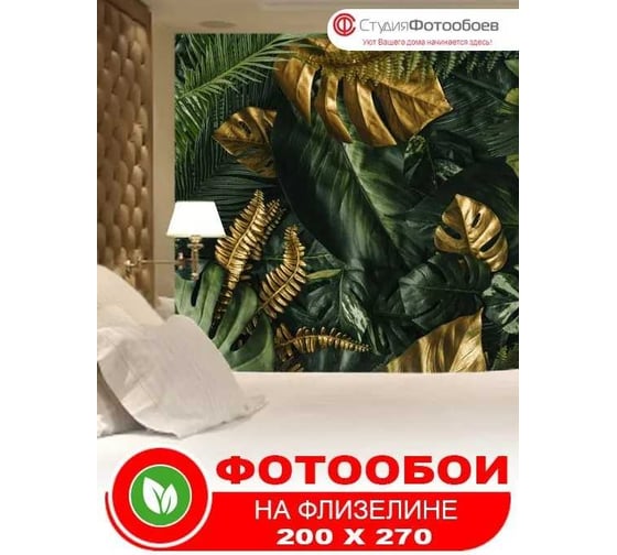 Флизелиновые фотообои Verol золотые листья, птицы 3д 300x283 см, 3  полотна 8,49 м2 зеленый 98-ФФО-05711