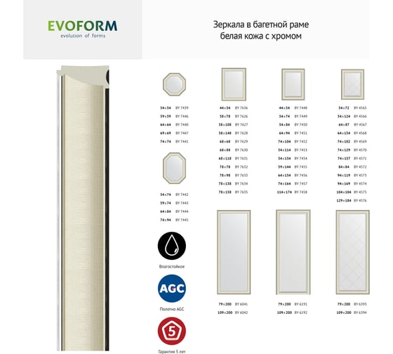 Зеркало с гравировкой в багетной раме EVOFORM византия серебро 99 мм, 79x133 см BY 4243