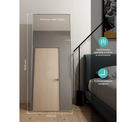 Зеркало EVOFORM с фацетом в багетной раме - алюминий 61 мм (71x101 см) BY 1199
