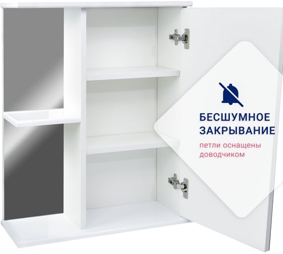 Зеркальный шкафчик 55 в ванную универсальный с полками RUVANN З.У.Д-55П