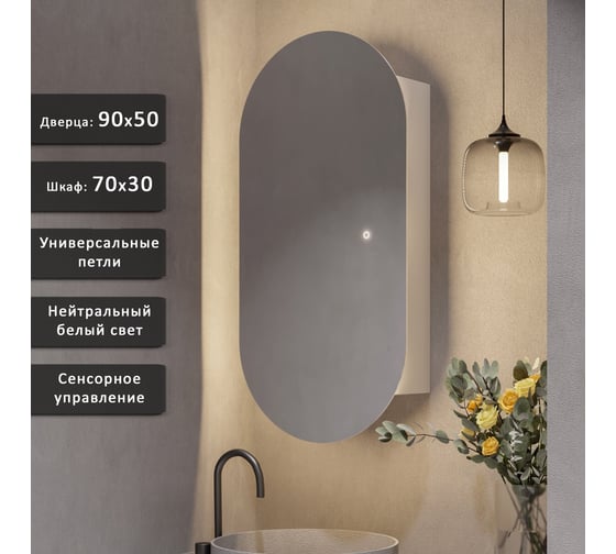 Зеркальный шкаф ALIAS Оливия 100x55 с нейтральной LED-подсветкой, универсальный sho100552