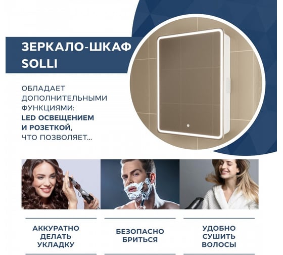 Шкаф зеркальный EQUIL Soldi LED 55, правый, белый софт szSOLDI55.R