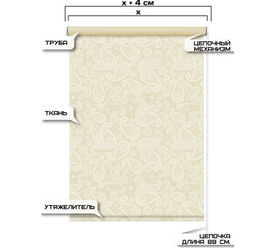 Рулонные шторы Эскар, лайт цвет крем 90x160см  7686090160
