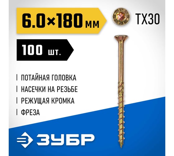 Саморез Гвозdeck ПОЛ, потай, 3.0х30, T10, с битой 20423030YETXWG4